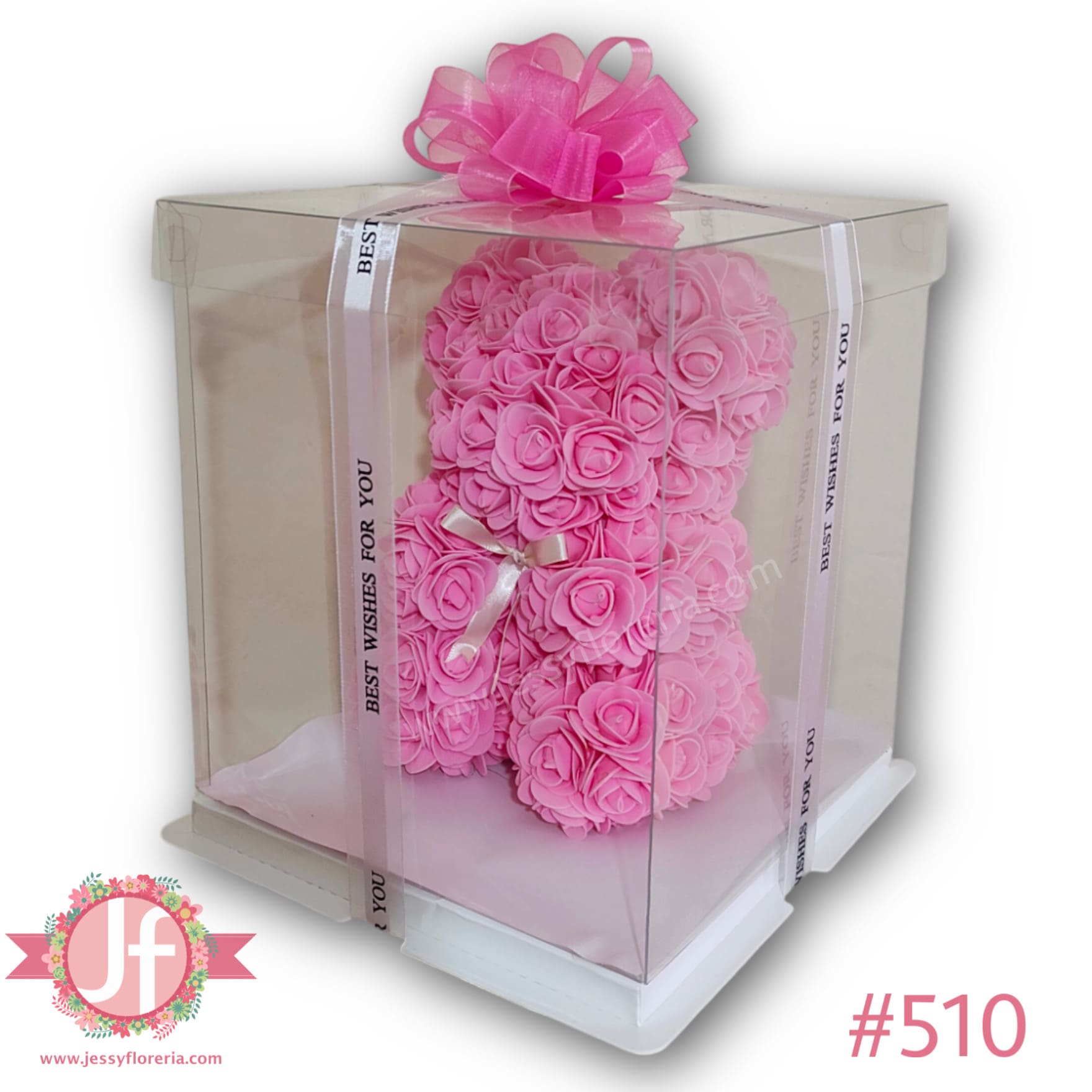 Sugerencia de mensaje para la Caja con oso de rosas rositas artificiales: “Contigo saltaría al vacío, contigo haría mil locuras, porque tú eres el amor de mi vida y hoy solo puedo decirte gracias por estar y feliz aniversario.”