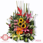 Puedes elegir el color de las flores o cotizar en otro tamaño, además de añadir globos, chocolates, botella de vino tinto o peluche.