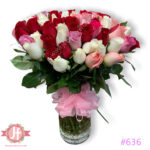 Florero con 100 rosas tricolor