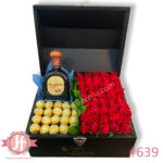 Cofre con 40 rosas, 20 ferreros y Don Julio reposado