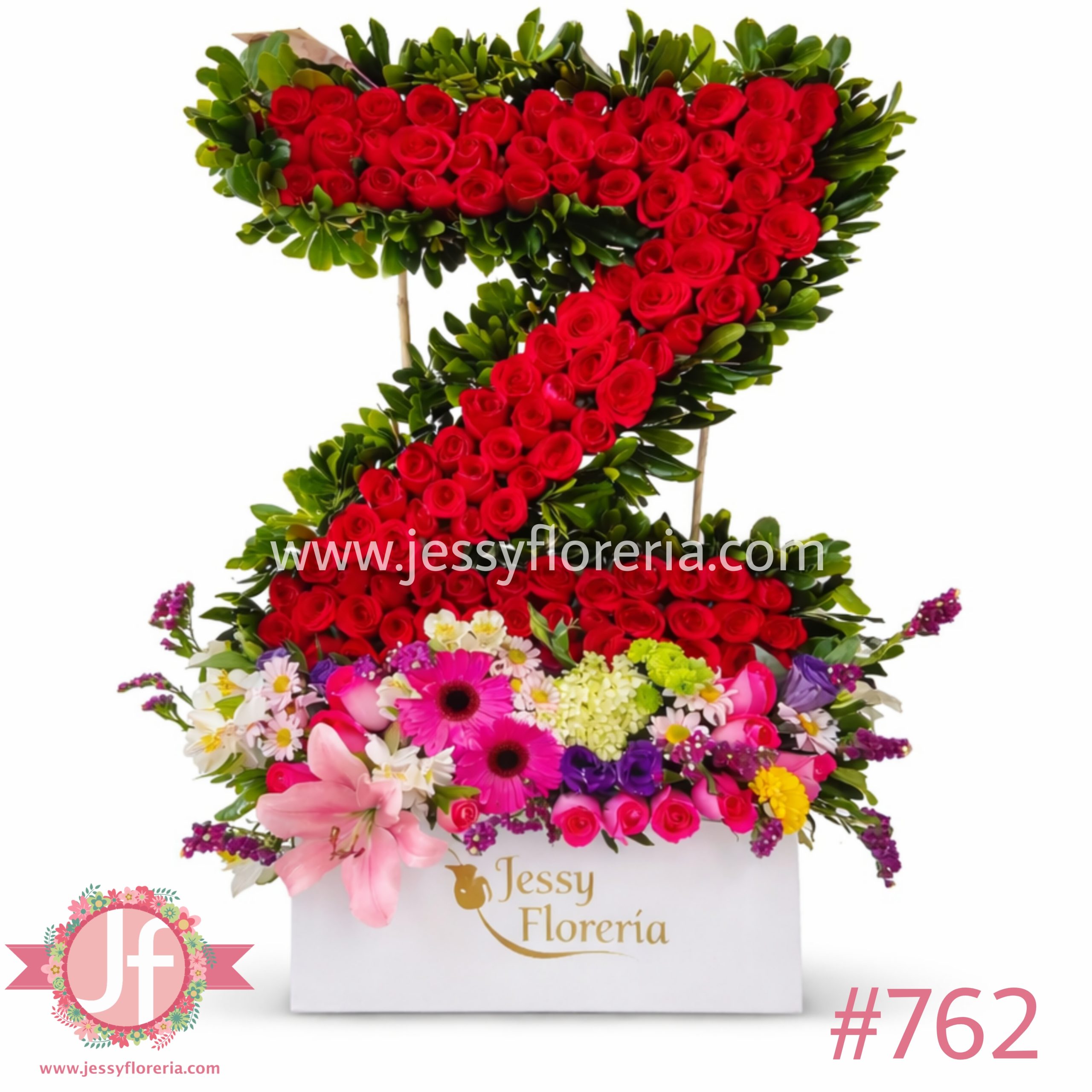 Puedes elegir el color de las flores o cotizar en otro tamaño, además de añadir globos, chocolates, botella de vino tinto o peluche.