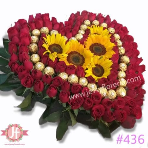 Puedes elegir el color de las flores o cotizar en otro tamaño, además de añadir globos, chocolates, botella de vino tinto o peluche.