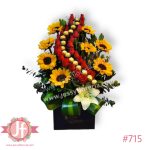Diseño con 24 rosas 8 girasoles y 16 ferreros_