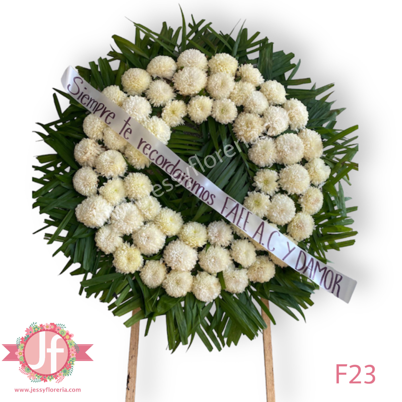 Sugerencia de mensaje para Corona floral blanca: “Siempre en nuestra memoria.”